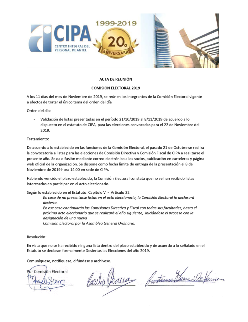 Acta de la Comisión Electoral 2019