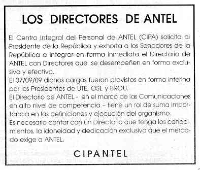 HACE MÁS DE 7 MESES QUE EL DIRECTORIO DE ANTEL NO NOS