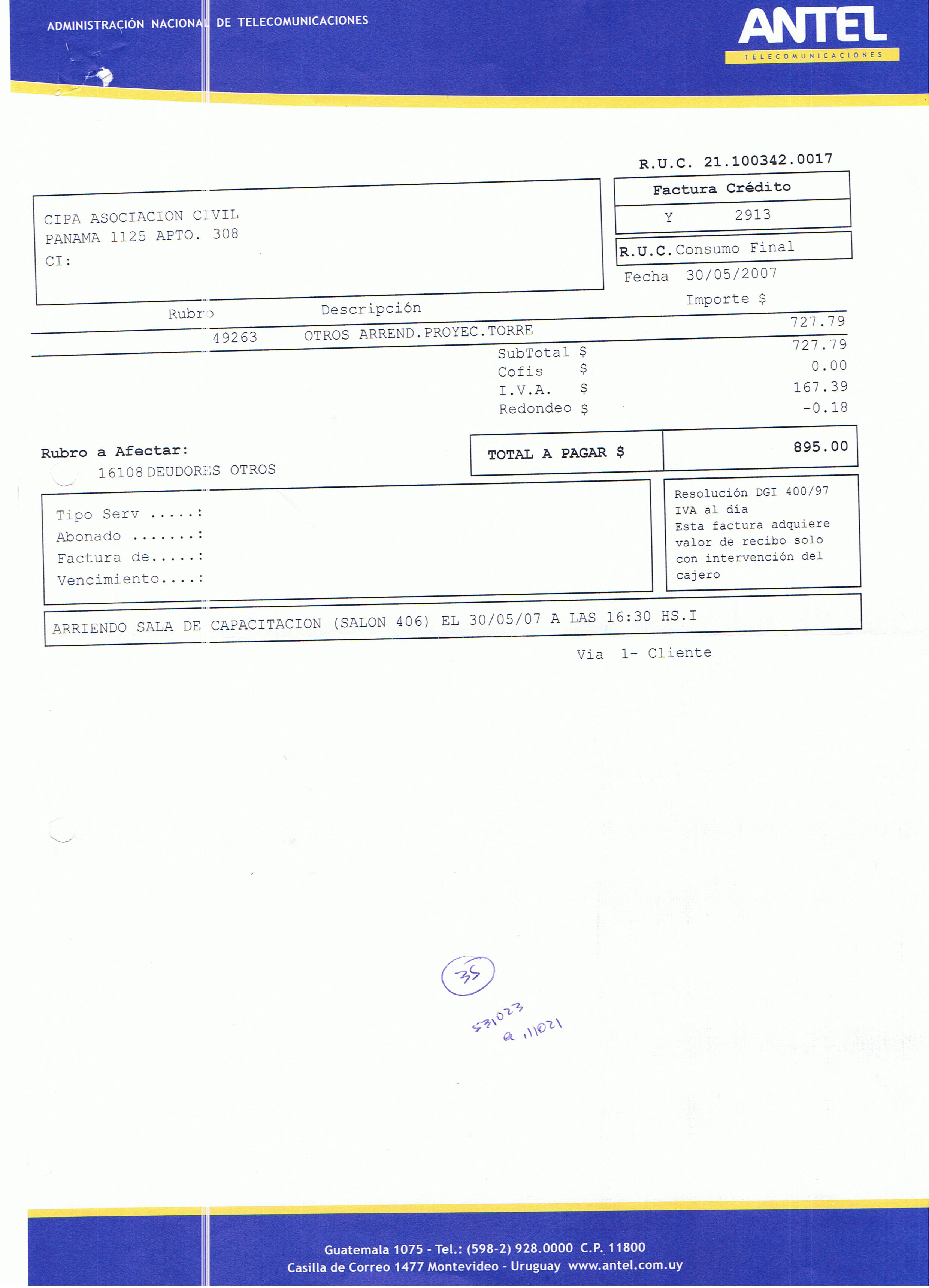 Antel el encararlo antes de entrar en el año 2007.